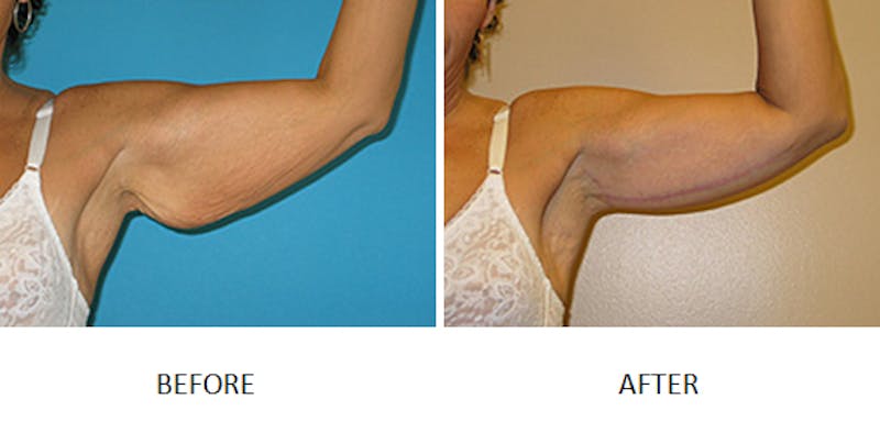 Brachioplasty, more commonly known as an arm lift, is an out-patient surgical procedure in which excess sagging skin is removed from the underside of the arms. On occasion Liposuction is used in conjunction with the arm lift to help tighten and smooth the underlying supportive tissue allowing us to reshape and provide improved contour to the upper arms.