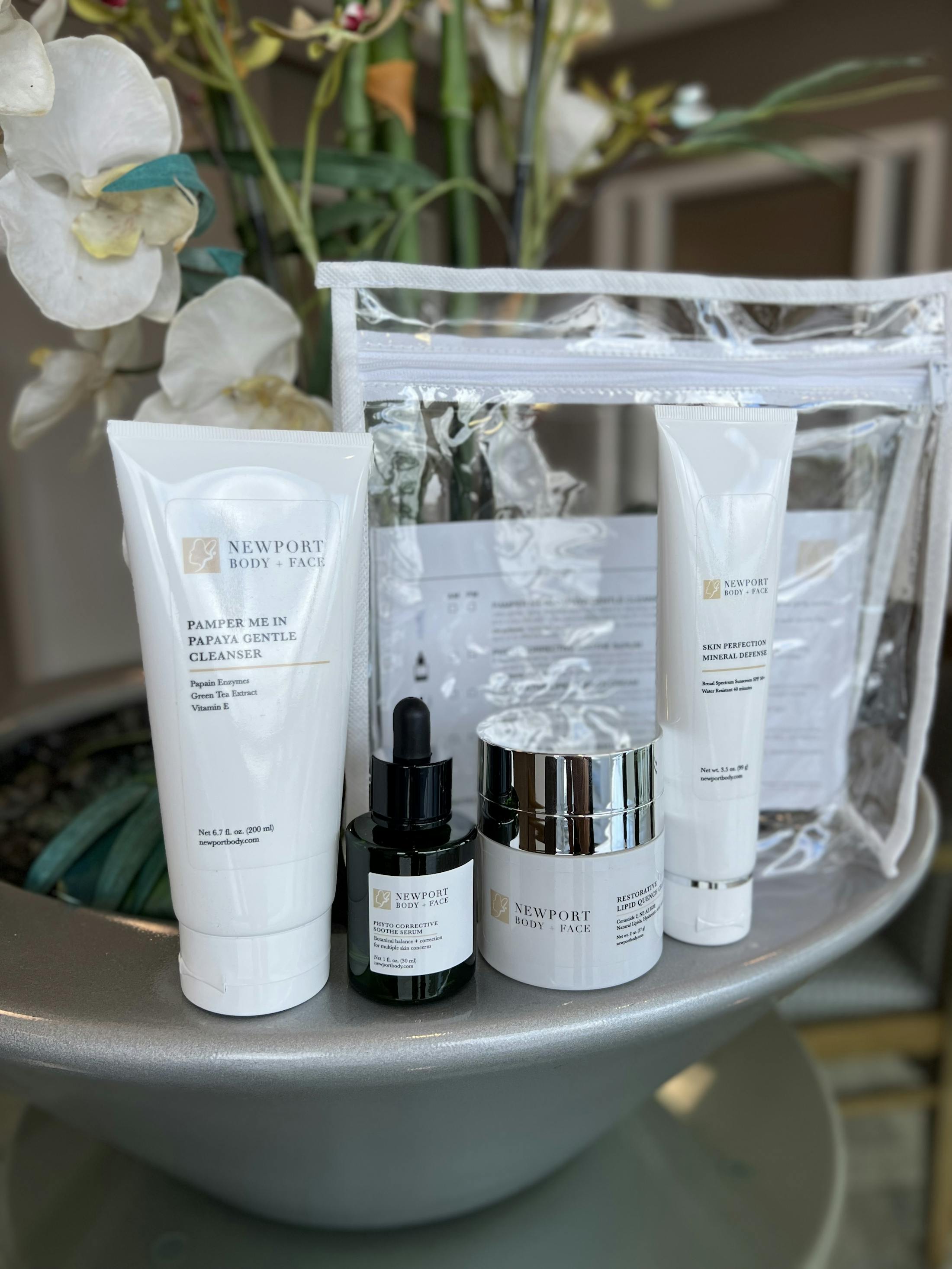 Newport Body + Face is our EXCLUSIVE pharmaceutical- and medical- grade FDA-approved skincare line available only in-office!